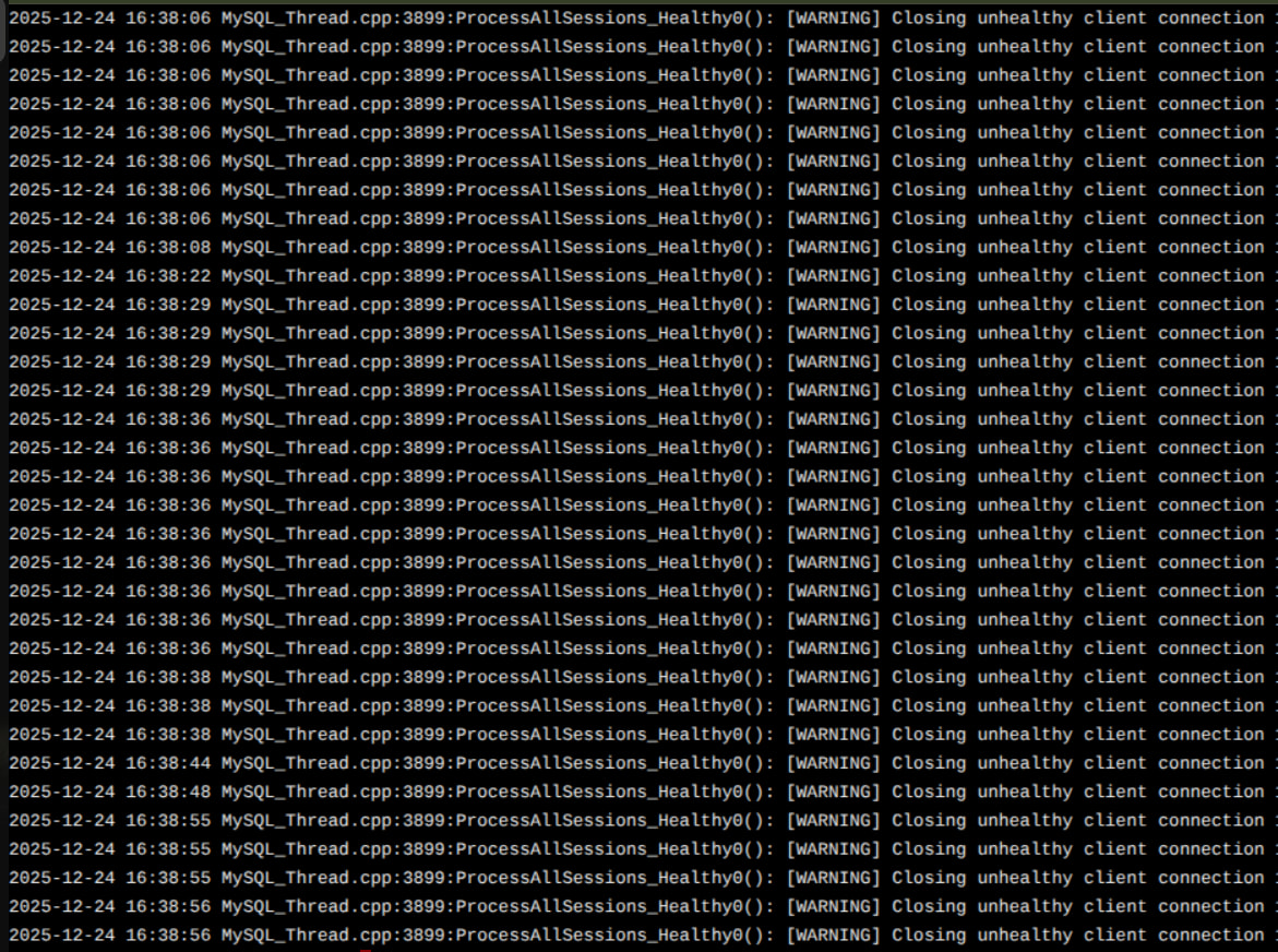 MySQL_Thread.cpp:3899:ProcessAllSessions_Healthy0(): [WARNING] Closing unhealthy client connection